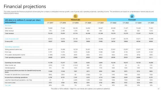 This slide presents the financial projections showcasing the companys anticipated revenue growth, cost of goods sold, operating expenses, operating income. The predictions are based on comprehensive market analysis and historical performance. There are so many reasons you need a Financial Projections Cloud Computing Services Business Model PPT Template. The first reason is you can not spend time making everything from scratch, Thus, Slidegeeks has made presentation templates for you too. You can easily download these templates from our website easily. This slide presents the financial projections showcasing the companys anticipated revenue growth, cost of goods sold, operating expenses, operating income. The predictions are based on comprehensive market analysis and historical performance.