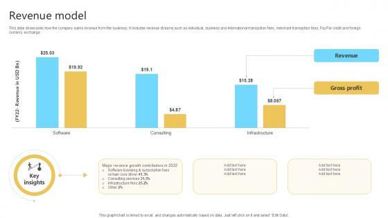 This slide showcases how the company earns revenue from the business. It includes revenue streams such as individual, business and international transaction fees, merchant transaction fees, PayPal credit and foreign currency exchange. Find highly impressive Revenue Model Cloud Computing Services Business Model PPT Example on Slidegeeks to deliver a meaningful presentation. You can save an ample amount of time using these presentation templates. No need to worry to prepare everything from scratch because Slidegeeks experts have already done a huge research and work for you. You need to download Revenue Model Cloud Computing Services Business Model PPT Example for your upcoming presentation. All the presentation templates are 100 percent editable and you can change the color and personalize the content accordingly. Download now This slide showcases how the company earns revenue from the business. It includes revenue streams such as individual, business and international transaction fees, merchant transaction fees, PayPal credit and foreign currency exchange.