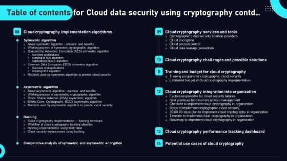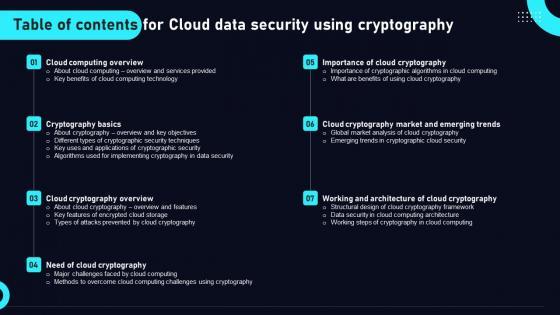 This modern and well arranged Cloud Data Security Using Cryptography Table Of Contents Inspiration Pdf provides lots of creative possibilities. It is very simple to customize and edit with the Powerpoint Software. Just drag and drop your pictures into the shapes. All facets of this template can be edited with Powerpoint, no extra software is necessary. Add your own material, put your images in the places assigned for them, adjust the colors, and then you can show your slides to the world, with an animated slide included. Our Cloud Data Security Using Cryptography Table Of Contents Inspiration Pdf are topically designed to provide an attractive backdrop to any subject. Use them to look like a presentation pro.