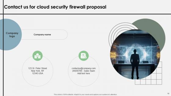 Transform your proposals into masterpieces with our Cloud Security Firewall Proposal Ppt Powerpoint Presentation Complete Deck. Our 100 percent editable Template features visually-stunning designs that are sure to impress. With easy-to-use features and customizable elements, you can create unique proposals that meet your specific needs. Whether you are creating a business proposal or a corporate proposal, our Template is the perfect tool to help you succeed. Our Cloud Security Firewall Proposal Ppt Powerpoint Presentation Complete Deck are topically designed to provide an attractive backdrop to any subject. Use them to look like a presentation pro.