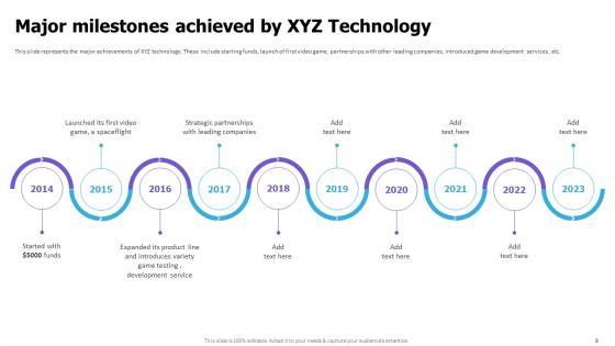 This slide represents the major achievements of XYZ technology. These include starting funds, launch of first video game, partnerships with other leading companies, introduced game development services , etc. Find highly impressive Major Milestones Achieved By XYZ Technology Cloud Game Development Fundraising Pitch Deck on Slidegeeks to deliver a meaningful presentation. You can save an ample amount of time using these presentation templates. No need to worry to prepare everything from scratch because Slidegeeks experts have already done a huge research and work for you. You need to download Major Milestones Achieved By XYZ Technology Cloud Game Development Fundraising Pitch Deck for your upcoming presentation. All the presentation templates are 100 percent editable and you can change the color and personalize the content accordingly. Download now This slide represents the major achievements of XYZ technology. These include starting funds, launch of first video game, partnerships with other leading companies, introduced game development services , etc.