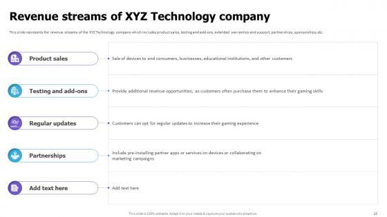 This slide represents the revenue streams of the XYZ Technology company which includes product sales, testing and add-ons, extended warranties and support, partnerships, sponsorships, etc. Make sure to capture your audiences attention in your business displays with our gratis customizable Revenue Streams Of XYZ Technology Company Cloud Game Development Fundraising Pitch Deck. These are great for business strategies, office conferences, capital raising or task suggestions. If you desire to acquire more customers for your tech business and ensure they stay satisfied, create your own sales presentation with these plain slides. This slide represents the revenue streams of the XYZ Technology company which includes product sales, testing and add-ons, extended warranties and support, partnerships, sponsorships, etc.