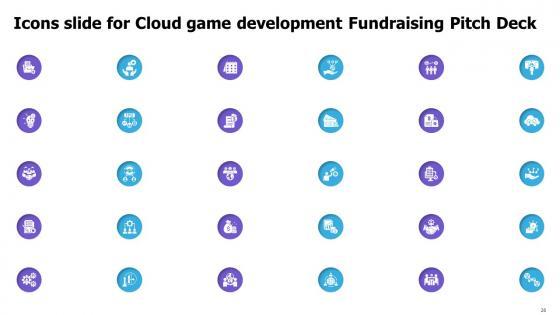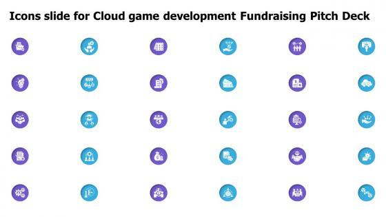 Slidegeeks is here to make your presentations a breeze with Icons Slide For Cloud Game Development Fundraising Pitch Deck With our easy-to-use and customizable templates, you can focus on delivering your ideas rather than worrying about formatting. With a variety of designs to choose from, you are sure to find one that suits your needs. And with animations and unique photos, illustrations, and fonts, you can make your presentation pop. So whether you are giving a sales pitch or presenting to the board, make sure to check out Slidegeeks first Our Icons Slide For Cloud Game Development Fundraising Pitch Deck are topically designed to provide an attractive backdrop to any subject. Use them to look like a presentation pro.