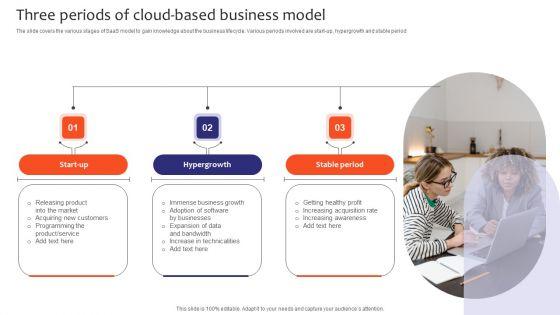 The slide covers the various stages of SaaS model to gain knowledge about the business lifecycle. Various periods involved are start-up, hypergrowth and stable period. Presenting Three Periods Of Cloud Based Business Model Graphics PDF to dispense important information. This template comprises three stages. It also presents valuable insights into the topics including Start-Up, Hypergrowth, Stable Period. This is a completely customizable PowerPoint theme that can be put to use immediately. So, download it and address the topic impactfully.