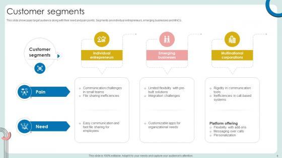 This slide showcases target audience along with their need and pain points. Segments are individual entrepreneurs, emerging businesses and MNCs. Want to ace your presentation in front of a live audience Our Customer Segments Cloud Based Communication Platform Business Model BMC SS V can help you do that by engaging all the users towards you. Slidegeeks experts have put their efforts and expertise into creating these impeccable powerpoint presentations so that you can communicate your ideas clearly. Moreover, all the templates are customizable, and easy-to-edit and downloadable. Use these for both personal and commercial use. This slide showcases target audience along with their need and pain points. Segments are individual entrepreneurs, emerging businesses and MNCs.