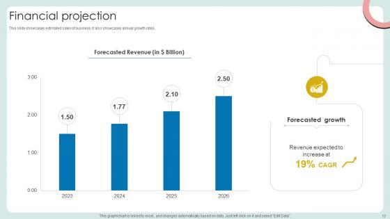 This slide showcases estimated sales of business. It also showcases annual growth rates. There are so many reasons you need a Financial Projection Cloud Based Communication Platform Business Model BMC SS V. The first reason is you can not spend time making everything from scratch, Thus, Slidegeeks has made presentation templates for you too. You can easily download these templates from our website easily. This slide showcases estimated sales of business. It also showcases annual growth rates.