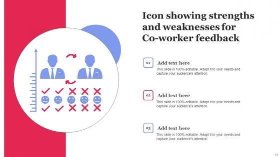 Showcasing this set of slides titled Icon Showing Strengths And Weaknesses For Co Worker Feedback Themes Pdf The topics addressed in these templates are Icon Showing, Strengths And Weaknesses, Co Worker Feedback All the content presented in this PPT design is completely editable. Download it and make adjustments in color, background, font etc. as per your unique business setting. Our Icon Showing Strengths And Weaknesses For Co Worker Feedback Themes Pdf are topically designed to provide an attractive backdrop to any subject. Use them to look like a presentation pro.