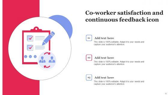 Pitch your topic with ease and precision using this Co Worker Satisfaction And Continuous Feedback Icon Graphics Pdf This layout presents information on Co Worker Satisfaction, Continuous Feedback Icon It is also available for immediate download and adjustment. So, changes can be made in the color, design, graphics or any other component to create a unique layout. Our Co Worker Satisfaction And Continuous Feedback Icon Graphics Pdf are topically designed to provide an attractive backdrop to any subject. Use them to look like a presentation pro.