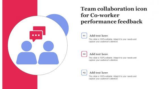 Showcasing this set of slides titled Team Collaboration Icon For Co Worker Performance Feedback Download Pdf. The topics addressed in these templates are Team Collaboration, Icon For Co Worker, Performance Feedback All the content presented in this PPT design is completely editable. Download it and make adjustments in color, background, font etc. as per your unique business setting. Our Team Collaboration Icon For Co Worker Performance Feedback Download Pdf are topically designed to provide an attractive backdrop to any subject. Use them to look like a presentation pro.