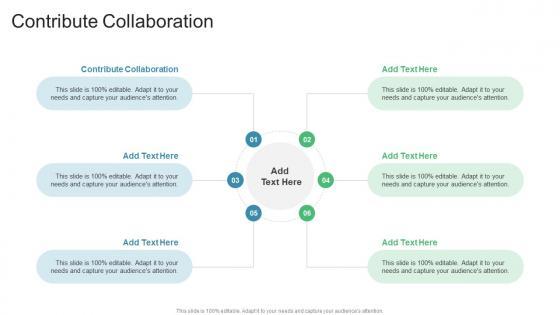 Introducing our well-designed Contribute Collaboration In Powerpoint And Google Slides Cpb. This PowerPoint design presents information on topics like Contribute Collaboration. As it is predesigned it helps boost your confidence level. It also makes you a better presenter because of its high-quality content and graphics. This PPT layout can be downloaded and used in different formats like PDF, PNG, and JPG. Not only this, it is available in both Standard Screen and Widescreen aspect ratios for your convenience. Therefore, click on the download button now to persuade and impress your audience. Our Contribute Collaboration In Powerpoint And Google Slides Cpb are topically designed to provide an attractive backdrop to any subject. Use them to look like a presentation pro.