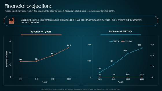Do you have to make sure that everyone on your team knows about any specific topic I yes, then you should give Financial Projections Team Collaboration Platform Pitch Deck PPT Example a try. Our experts have put a lot of knowledge and effort into creating this impeccable Financial Projections Team Collaboration Platform Pitch Deck PPT Example. You can use this template for your upcoming presentations, as the slides are perfect to represent even the tiniest detail. You can download these templates from the Slidegeeks website and these are easy to edit. So grab these today Our Financial Projections Team Collaboration Platform Pitch Deck PPT Example are topically designed to provide an attractive backdrop to any subject. Use them to look like a presentation pro.