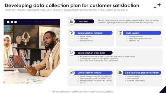This slide shows introduction of measure phase in six sigma process improvement to measure quality performance of current workflow. It includes description and major goals, etc. Do you have an important presentation coming up Are you looking for something that will make your presentation stand out from the rest Look no further than Developing Data Collection Plan DMAIC Methodology To Maintain PPT Template. With our professional designs, you can trust that your presentation will pop and make delivering it a smooth process. And with Slidegeeks, you can trust that your presentation will be unique and memorable. So why wait Grab Developing Data Collection Plan DMAIC Methodology To Maintain PPT Template today and make your presentation stand out from the rest This slide shows introduction of measure phase in six sigma process improvement to measure quality performance of current workflow. It includes description and major goals, etc.