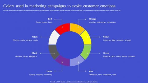This slide represents colors used by marketers during promotions and campaigns to attract customers and build emotional connection with them. It covers elements for each color such as power, wisdom, luxury etc. Create an editable Exploring Neuromarketing Strategies Colors Used In Marketing Campaigns Rules Pdf that communicates your idea and engages your audience. Whether you are presenting a business or an educational presentation, pre designed presentation templates help save time. Exploring Neuromarketing Strategies Colors Used In Marketing Campaigns Rules Pdf is highly customizable and very easy to edit, covering many different styles from creative to business presentations. Slidegeeks has creative team members who have crafted amazing templates. So, go and get them without any delay. This slide represents colors used by marketers during promotions and campaigns to attract customers and build emotional connection with them. It covers elements for each color such as power, wisdom, luxury etc.