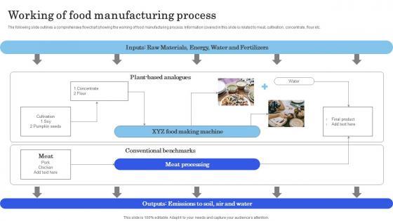 The following slide outlines a comprehensive flowchart showing the working of food manufacturing process. Information covered in this slide is related to meat, cultivation, concentrate, flour etc. Do you have to make sure that everyone on your team knows about any specific topic I yes, then you should give Launching New Commodity Working Of Food Manufacturing Process Pictures Pdf a try. Our experts have put a lot of knowledge and effort into creating this impeccable Launching New Commodity Working Of Food Manufacturing Process Pictures Pdf You can use this template for your upcoming presentations, as the slides are perfect to represent even the tiniest detail. You can download these templates from the Slidegeeks website and these are easy to edit. So grab these today The following slide outlines a comprehensive flowchart showing the working of food manufacturing process. Information covered in this slide is related to meat, cultivation, concentrate, flour etc.
