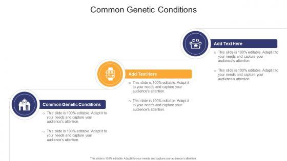 Presenting our innovatively-designed set of slides titled Common Genetic Conditions In Powerpoint And Google Slides Cpb. This completely editable PowerPoint graphic exhibits Common Genetic Conditions that will help you convey the message impactfully. It can be accessed with Google Slides and is available in both standard screen and widescreen aspect ratios. Apart from this, you can download this well-structured PowerPoint template design in different formats like PDF, JPG, and PNG. So, click the download button now to gain full access to this PPT design. Our Common Genetic Conditions In Powerpoint And Google Slides Cpb are topically designed to provide an attractive backdrop to any subject. Use them to look like a presentation pro.