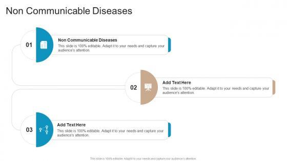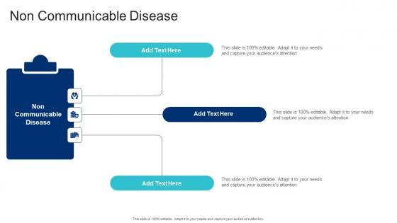 Introducing our well designed Non Communicable Disease In Powerpoint And Google Slides Cpb. This PowerPoint design presents information on topics like Non Communicable Disease. As it is predesigned it helps boost your confidence level. It also makes you a better presenter because of its high quality content and graphics. This PPT layout can be downloaded and used in different formats like PDF, PNG, and JPG. Not only this, it is available in both Standard Screen and Widescreen aspect ratios for your convenience. Therefore, click on the download button now to persuade and impress your audience. Our Non Communicable Disease In Powerpoint And Google Slides Cpb are topically designed to provide an attractive backdrop to any subject. Use them to look like a presentation pro.