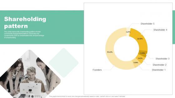 This slide represents shareholding pattern of older community engagement platform. It includes key components such as shareholders list, and percentage of shareholding. Do you have an important presentation coming up Are you looking for something that will make your presentation stand out from the rest Look no further than Shareholding Pattern Social Community Management Solution Funding Pitch Presentation Icons Pdf. With our professional designs, you can trust that your presentation will pop and make delivering it a smooth process. And with Slidegeeks, you can trust that your presentation will be unique and memorable. So why wait Grab Shareholding Pattern Social Community Management Solution Funding Pitch Presentation Icons Pdf today and make your presentation stand out from the rest This slide represents shareholding pattern of older community engagement platform. It includes key components such as shareholders list, and percentage of shareholding.