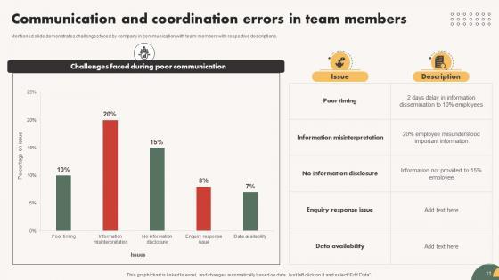 Mentioned slide demonstrates challenges faced by company in communication with team members with respective descriptions. Do you have an important presentation coming up Are you looking for something that will make your presentation stand out from the rest Look no further than Automated Communication System Communication And Coordination Errors In Team. With our professional designs, you can trust that your presentation will pop and make delivering it a smooth process. And with Slidegeeks, you can trust that your presentation will be unique and memorable. So why wait Grab Automated Communication System Communication And Coordination Errors In Team today and make your presentation stand out from the rest Mentioned slide demonstrates challenges faced by company in communication with team members with respective descriptions.
