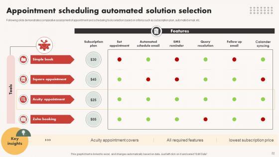Following slide demonstrates comparative assessment of appointment and scheduling tools selection based on criteria such as subscription plan, automated email, etc. There are so many reasons you need a Automated Communication System Appointment Scheduling Automated Solution. The first reason is you can not spend time making everything from scratch, Thus, Slidegeeks has made presentation templates for you too. You can easily download these templates from our website easily. Following slide demonstrates comparative assessment of appointment and scheduling tools selection based on criteria such as subscription plan, automated email, etc.