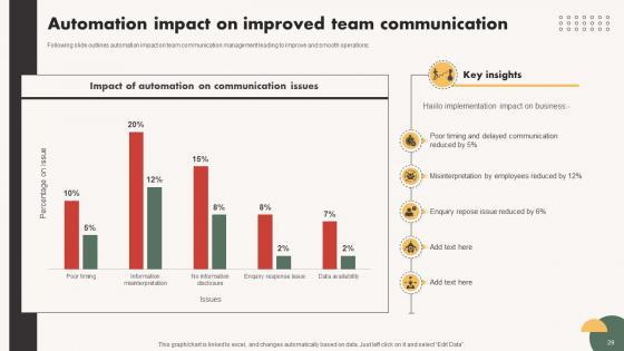 Following slide outlines automation impact on team communication management leading to improve and smooth operations. Do you have to make sure that everyone on your team knows about any specific topic I yes, then you should give Automated Communication System Automation Impact On Improved Team a try. Our experts have put a lot of knowledge and effort into creating this impeccable Automated Communication System Automation Impact On Improved Team. You can use this template for your upcoming presentations, as the slides are perfect to represent even the tiniest detail. You can download these templates from the Slidegeeks website and these are easy to edit. So grab these today Following slide outlines automation impact on team communication management leading to improve and smooth operations.
