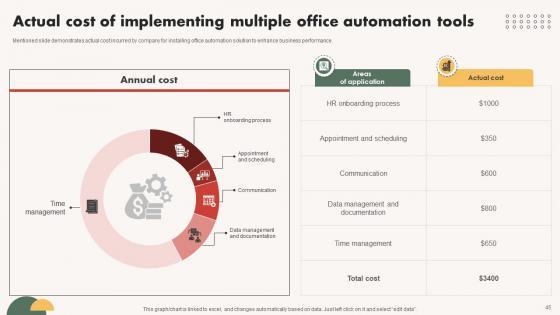 Mentioned slide demonstrates actual cost incurred by company for installing office automation solution to enhance business performance. Want to ace your presentation in front of a live audience Our Automated Communication System Actual Cost Of Implementing Multiple Office can help you do that by engaging all the users towards you. Slidegeeks experts have put their efforts and expertise into creating these impeccable powerpoint presentations so that you can communicate your ideas clearly. Moreover, all the templates are customizable, and easy-to-edit and downloadable. Use these for both personal and commercial use. Mentioned slide demonstrates actual cost incurred by company for installing office automation solution to enhance business performance.