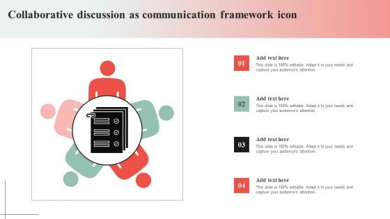 Pitch your topic with ease and precision using this Collaborative Discussion As Communication Framework Icon Ideas Pdf This layout presents information on Collaborative Discussion, Communication Framework Icon It is also available for immediate download and adjustment. So, changes can be made in the color, design, graphics or any other component to create a unique layout. Our Collaborative Discussion As Communication Framework Icon Ideas Pdf are topically designed to provide an attractive backdrop to any subject. Use them to look like a presentation pro.