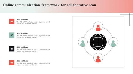 Showcasing this set of slides titled Online Communication Framework For Collaborative Icon Graphics Pdf The topics addressed in these templates are Online Communication, Framework For Collaborative Icon All the content presented in this PPT design is completely editable. Download it and make adjustments in color, background, font etc. as per your unique business setting. Our Online Communication Framework For Collaborative Icon Graphics Pdf are topically designed to provide an attractive backdrop to any subject. Use them to look like a presentation pro.