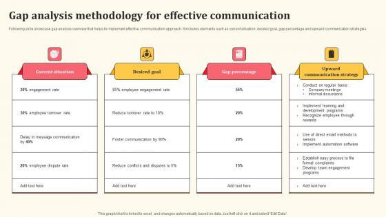 Following slide showcase gap analysis overview that helps to implement effective communication approach. It includes elements such as current situation, desired goal, gap percentage and upward communication strategies. Retrieve professionally designed Gap Analysis Methodology For Effective Communication Detailed Personnel Brochure Pdf to effectively convey your message and captivate your listeners. Save time by selecting pre-made slideshows that are appropriate for various topics, from business to educational purposes. These themes come in many different styles, from creative to corporate, and all of them are easily adjustable and can be edited quickly. Access them as PowerPoint templates or as Google Slides themes. You do not have to go on a hunt for the perfect presentation because Slidegeeks got you covered from everywhere. Following slide showcase gap analysis overview that helps to implement effective communication approach. It includes elements such as current situation, desired goal, gap percentage and upward communication strategies.