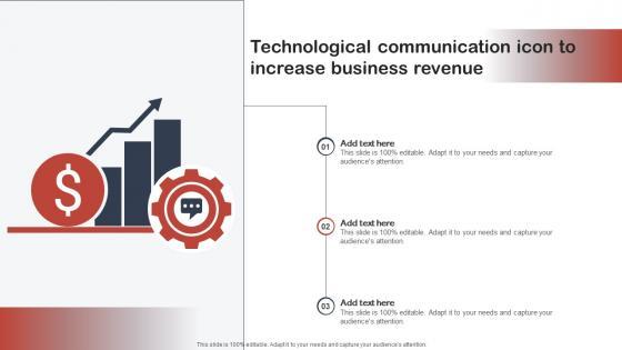 Showcasing this set of slides titled Technological Communication Icon To Increase Business Revenue Mockup Pdf. The topics addressed in these templates are Technological Communication, Increase, Business Revenue. All the content presented in this PPT design is completely editable. Download it and make adjustments in color, background, font etc. as per your unique business setting. Our Technological Communication Icon To Increase Business Revenue Mockup Pdf are topically designed to provide an attractive backdrop to any subject. Use them to look like a presentation pro.
