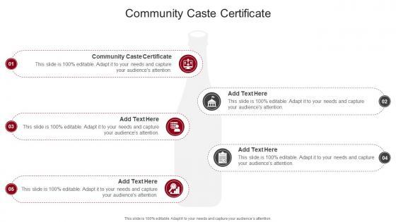 Introducing our well-designed Community Caste Certificate In Powerpoint And Google Slides Cpb. This PowerPoint design presents information on topics like Community Caste Certificate. As it is predesigned it helps boost your confidence level. It also makes you a better presenter because of its high-quality content and graphics. This PPT layout can be downloaded and used in different formats like PDF, PNG, and JPG. Not only this, it is available in both Standard Screen and Widescreen aspect ratios for your convenience. Therefore, click on the download button now to persuade and impress your audience. Our Community Caste Certificate In Powerpoint And Google Slides Cpb are topically designed to provide an attractive backdrop to any subject. Use them to look like a presentation pro.