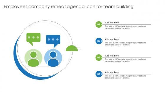 Showcasing this set of slides titled Employees Company Retreat Agenda Icon For Team Building Pictures Pdf. The topics addressed in these templates are Employees Company, Retreat Agenda, Team Building. All the content presented in this PPT design is completely editable. Download it and make adjustments in color, background, font etc. as per your unique business setting. Our Employees Company Retreat Agenda Icon For Team Building Pictures Pdf are topically designed to provide an attractive backdrop to any subject. Use them to look like a presentation pro.