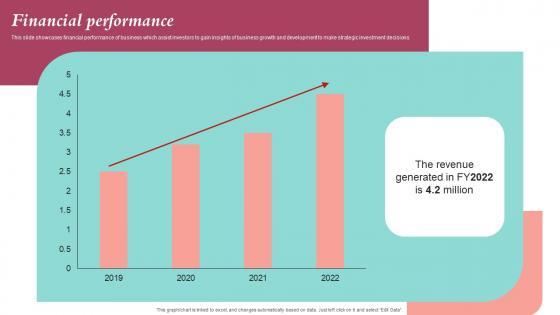 This slide showcases financial performance of business which assist investors to gain insights of business growth and development to make strategic investment decisions. Present like a pro with Financial Performance Pet Care Company Investor Funding Elevator Pitch Deck Formats Pdf Create beautiful presentations together with your team, using our easy to use presentation slides. Share your ideas in real time and make changes on the fly by downloading our templates. So whether you are in the office, on the go, or in a remote location, you can stay in sync with your team and present your ideas with confidence. With Slidegeeks presentation got a whole lot easier. Grab these presentations today. This slide showcases financial performance of business which assist investors to gain insights of business growth and development to make strategic investment decisions.