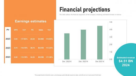 This slide showcases forecasted growth of company that will assist investors to determine future potential of business and make investment decision that will be most profitable for them. Create an editable Financial Projections Fundraising Pitch Deck For Digital Software Company Formats Pdf that communicates your idea and engages your audience. Whether you are presenting a business or an educational presentation, pre designed presentation templates help save time. Financial Projections Fundraising Pitch Deck For Digital Software Company Formats Pdf is highly customizable and very easy to edit, covering many different styles from creative to business presentations. Slidegeeks has creative team members who have crafted amazing templates. So, go and get them without any delay. This slide showcases forecasted growth of company that will assist investors to determine future potential of business and make investment decision that will be most profitable for them.