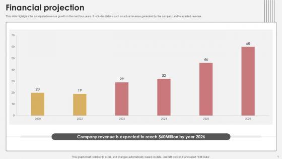 This slide highlights the anticipated revenue growth in the next four years. It includes details such as actual revenue generated by the company and forecasted revenue. Slidegeeks is here to make your presentations a breeze with Financial Projection Communication Tech Company Pitch Deck PPT Sample With our easy-to-use and customizable templates, you can focus on delivering your ideas rather than worrying about formatting. With a variety of designs to choose from, you are sure to find one that suits your needs. And with animations and unique photos, illustrations, and fonts, you can make your presentation pop. So whether you are giving a sales pitch or presenting to the board, make sure to check out Slidegeeks first This slide highlights the anticipated revenue growth in the next four years. It includes details such as actual revenue generated by the company and forecasted revenue.