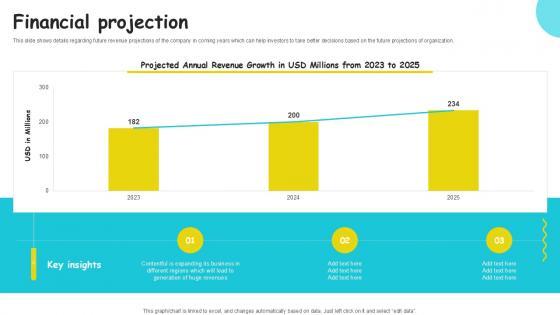This slide shows details regarding future revenue projections of the company which can help investors to take better decisions based on the future projections of organization. Slidegeeks is here to make your presentations a breeze with Financial Projection Social Media Application Development Company Fundraising Pitch Deck With our easy-to-use and customizable templates, you can focus on delivering your ideas rather than worrying about formatting. With a variety of designs to choose from, you are sure to find one that suits your needs. And with animations and unique photos, illustrations, and fonts, you can make your presentation pop. So whether you are giving a sales pitch or presenting to the board, make sure to check out Slidegeeks first This slide shows details regarding future revenue projections of the company which can help investors to take better decisions based on the future projections of organization.