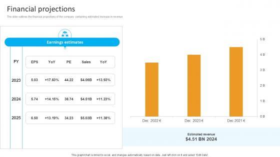 This slide covers financial projections of the company based on sales, underlying trading operating profit. The purpose of this template is to provide an overview on projections such as increasing organic growth by 9.3 percent , e-commerce sales by 13.6 percent, earning per share between 6-10 percent, etc. Slidegeeks is here to make your presentations a breeze with Financial Projection Retail Merchandising Company Investor Funding Elevator Pitch Deck Ppt Slides With our easy-to-use and customizable templates, you can focus on delivering your ideas rather than worrying about formatting. With a variety of designs to choose from, you are sure to find one that suits your needs. And with animations and unique photos, illustrations, and fonts, you can make your presentation pop. So whether you are giving a sales pitch or presenting to the board, make sure to check out Slidegeeks first This slide covers financial projections of the company based on sales, underlying trading operating profit. The purpose of this template is to provide an overview on projections such as increasing organic growth by 9.3 percent , e-commerce sales by 13.6 percent, earning per share between 6-10 percent, etc.