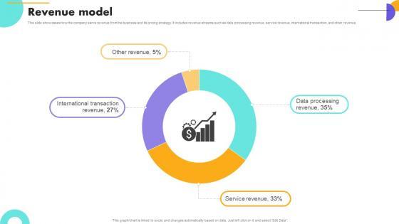 This slide showcases how the company earns revenue from the business and its pricing strategy. It includes revenue streams such as data processing revenue, service revenue, international transaction, and other revenue. Find highly impressive Revenue Model Payment Gateway Company Business Model BMC SS V on Slidegeeks to deliver a meaningful presentation. You can save an ample amount of time using these presentation templates. No need to worry to prepare everything from scratch because Slidegeeks experts have already done a huge research and work for you. You need to download Revenue Model Payment Gateway Company Business Model BMC SS V for your upcoming presentation. All the presentation templates are 100 percent editable and you can change the color and personalize the content accordingly. Download now This slide showcases how the company earns revenue from the business and its pricing strategy. It includes revenue streams such as data processing revenue, service revenue, international transaction, and other revenue.