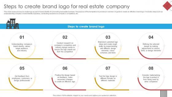 This slide covers process to create logo as part of brand identity for promoting real estate business. The purpose of this template is to provide an overview on guide to create an effective brand logo. It includes steps such as understanding companys brand identity objectives, conducting research on companys competitors, etc. Make sure to capture your audiences attention in your business displays with our gratis customizable Blueprint For Effective Real Steps To Create Brand Logo For Real Estate Company Strategy SS V. These are great for business strategies, office conferences, capital raising or task suggestions. If you desire to acquire more customers for your tech business and ensure they stay satisfied, create your own sales presentation with these plain slides. This slide covers process to create logo as part of brand identity for promoting real estate business. The purpose of this template is to provide an overview on guide to create an effective brand logo. It includes steps such as understanding companys brand identity objectives, conducting research on companys competitors, etc.