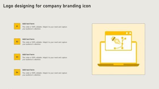 Persuade your audience using this Logo Designing For Company Branding Icon Topics PDF. This PPT design covers three stages, thus making it a great tool to use. It also caters to a variety of topics including Logo Designing, Company Branding Icon. Download this PPT design now to present a convincing pitch that not only emphasizes the topic but also showcases your presentation skills.