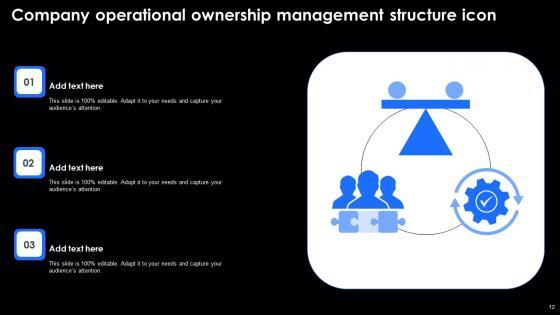 Showcasing this set of slides titled Company Operational Ownership Management Structure Icon Background Pdf. The topics addressed in these templates are Company Operational Ownership, Management Structure Icon . All the content presented in this PPT design is completely editable. Download it and make adjustments in color, background, font etc. as per your unique business setting. Our Company Operational Ownership Management Structure Icon Background Pdf are topically designed to provide an attractive backdrop to any subject. Use them to look like a presentation pro.
