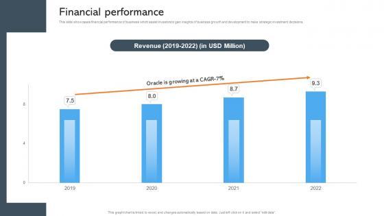 This slide showcases financial performance of business which assist investors to gain insights of business growth and development to make strategic investment decisions. Present like a pro with Financial Performance Data Management Company Investor Funding Pitch Deck. Create beautiful presentations together with your team, using our easy-to-use presentation slides. Share your ideas in real-time and make changes on the fly by downloading our templates. So whether you are in the office, on the go, or in a remote location, you can stay in sync with your team and present your ideas with confidence. With Slidegeeks presentation got a whole lot easier. Grab these presentations today. This slide showcases financial performance of business which assist investors to gain insights of business growth and development to make strategic investment decisions.