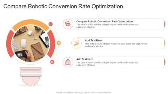 Introducing our well-designed Compare Robotic Conversion Rate Optimization In Powerpoint And Google Slides Cpb. This PowerPoint design presents information on topics like Compare Robotic Conversion Rate Optimization. As it is predesigned it helps boost your confidence level. It also makes you a better presenter because of its high-quality content and graphics. This PPT layout can be downloaded and used in different formats like PDF, PNG, and JPG. Not only this, it is available in both Standard Screen and Widescreen aspect ratios for your convenience. Therefore, click on the download button now to persuade and impress your audience. Our Compare Robotic Conversion Rate Optimization In Powerpoint And Google Slides Cpb are topically designed to provide an attractive backdrop to any subject. Use them to look like a presentation pro.
