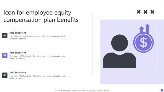 Showcasing this set of slides titled Icon For Employee Equity Compensation Plan Benefits Pictures Pdf. The topics addressed in these templates are Icon Employee Equity, Compensation Plan Benefits. All the content presented in this PPT design is completely editable. Download it and make adjustments in color, background, font etc. as per your unique business setting. Our Icon For Employee Equity Compensation Plan Benefits Pictures Pdf are topically designed to provide an attractive backdrop to any subject. Use them to look like a presentation pro.
