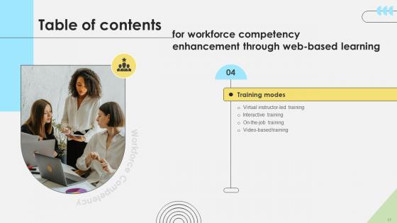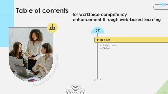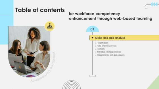 Slidegeeks is one of the best resources for PowerPoint templates. You can download easily and regulate Table Of Contents Workforce Competency Enhancement Through Web Based Learning DTE SS V for your personal presentations from our wonderful collection. A few clicks is all it takes to discover and get the most relevant and appropriate templates. Use our Templates to add a unique zing and appeal to your presentation and meetings. All the slides are easy to edit and you can use them even for advertisement purposes. Our Table Of Contents Workforce Competency Enhancement Through Web Based Learning DTE SS V are topically designed to provide an attractive backdrop to any subject. Use them to look like a presentation pro.