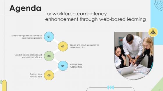 Find a pre-designed and impeccable Agenda For Workforce Competency Enhancement Through Web Based Learning DTE SS V. The templates can ace your presentation without additional effort. You can download these easy-to-edit presentation templates to make your presentation stand out from others. So, what are you waiting for Download the template from Slidegeeks today and give a unique touch to your presentation. Our Agenda For Workforce Competency Enhancement Through Web Based Learning DTE SS V are topically designed to provide an attractive backdrop to any subject. Use them to look like a presentation pro.