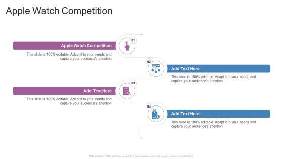 Introducing our well-designed Apple Watch Competition In Powerpoint And Google Slides Cpb. This PowerPoint design presents information on topics like Apple Watch Competition. As it is predesigned it helps boost your confidence level. It also makes you a better presenter because of its high-quality content and graphics. This PPT layout can be downloaded and used in different formats like PDF, PNG, and JPG. Not only this, it is available in both Standard Screen and Widescreen aspect ratios for your convenience. Therefore, click on the download button now to persuade and impress your audience. Our Apple Watch Competition In Powerpoint And Google Slides Cpb are topically designed to provide an attractive backdrop to any subject. Use them to look like a presentation pro.