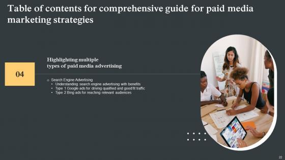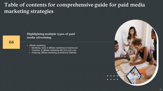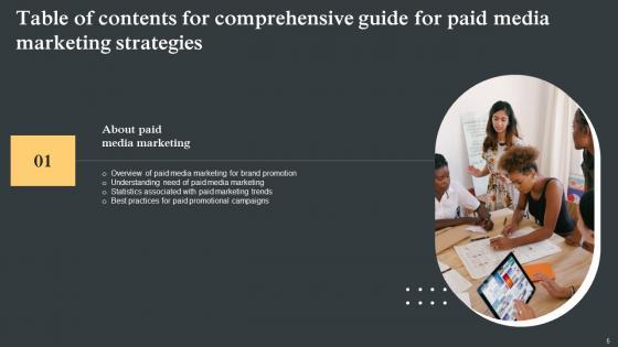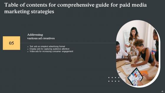 Coming up with a presentation necessitates that the majority of the effort goes into the content and the message you intend to convey. The visuals of a PowerPoint presentation can only be effective if it supplements and supports the story that is being told. Keeping this in mind our experts created Complete Guide Of Paid Media Marketing Techniques Table Of Contesnts Summary PDF to reduce the time that goes into designing the presentation. This way, you can concentrate on the message while our designers take care of providing you with the right template for the situation.