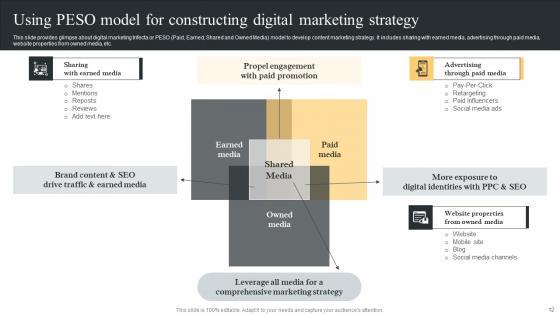 This slide provides glimpse about digital marketing trifecta or PESO Paid, Earned, Shared and Owned Media model to develop content marketing strategy. It includes sharing with earned media, advertising through paid media, website properties from owned media, etc. The best PPT templates are a great way to save time, energy, and resources. Slidegeeks have 100 percent editable powerpoint slides making them incredibly versatile. With these quality presentation templates, you can create a captivating and memorable presentation by combining visually appealing slides and effectively communicating your message. Download Complete Guide Of Paid Media Marketing Techniques Using PESO Model For Constructing Graphics PDF from Slidegeeks and deliver a wonderful presentation.