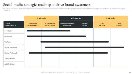 This slide provides glimpse about a roadmap timeline plan that can help our organization to increase brand awareness through digital content on social media. It includes digital media platforms such as Facebook, Instagram, Pinterest, etc. Do you have to make sure that everyone on your team knows about any specific topic I yes, then you should give Complete Guide Of Paid Media Marketing Techniques Social Media Strategic Roadmap Sample PDF a try. Our experts have put a lot of knowledge and effort into creating this impeccable Complete Guide Of Paid Media Marketing Techniques Social Media Strategic Roadmap Sample PDF. You can use this template for your upcoming presentations, as the slides are perfect to represent even the tiniest detail. You can download these templates from the Slidegeeks website and these are easy to edit. So grab these today.
