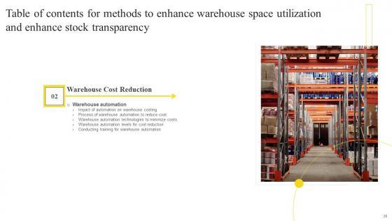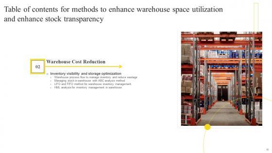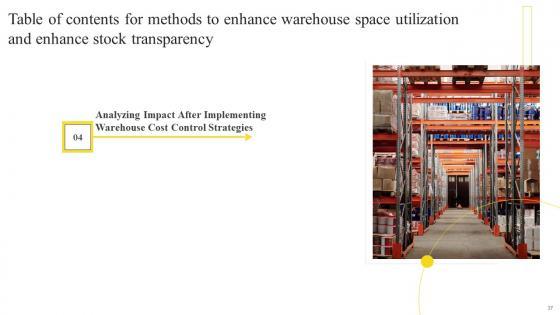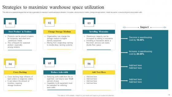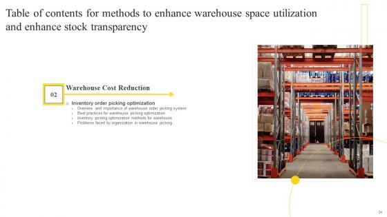 This Methods To Enhance Warehouse Space Utilization And Enhance Stock Transparency Complete Deck is a primer on how to capitalize on business opportunities through planning, innovation, and market intelligence. The content-ready format of the complete deck will make your job as a decision-maker a lot easier. Use this ready-made PowerPoint Template to help you outline an extensive and legible plan to capture markets and grow your company on the right path, at an exponential pace. What is even more amazing is that this presentation is completely editable and 100 percent customizable. This fifty fourslide complete deck helps you impress a roomful of people with your expertise in business and even presentation. Craft such a professional and appealing presentation for that amazing recall value. Download now. Our Methods To Enhance Warehouse Space Utilization And Enhance Stock Transparency Complete Deck are topically designed to provide an attractive backdrop to any subject. Use them to look like a presentation pro.
